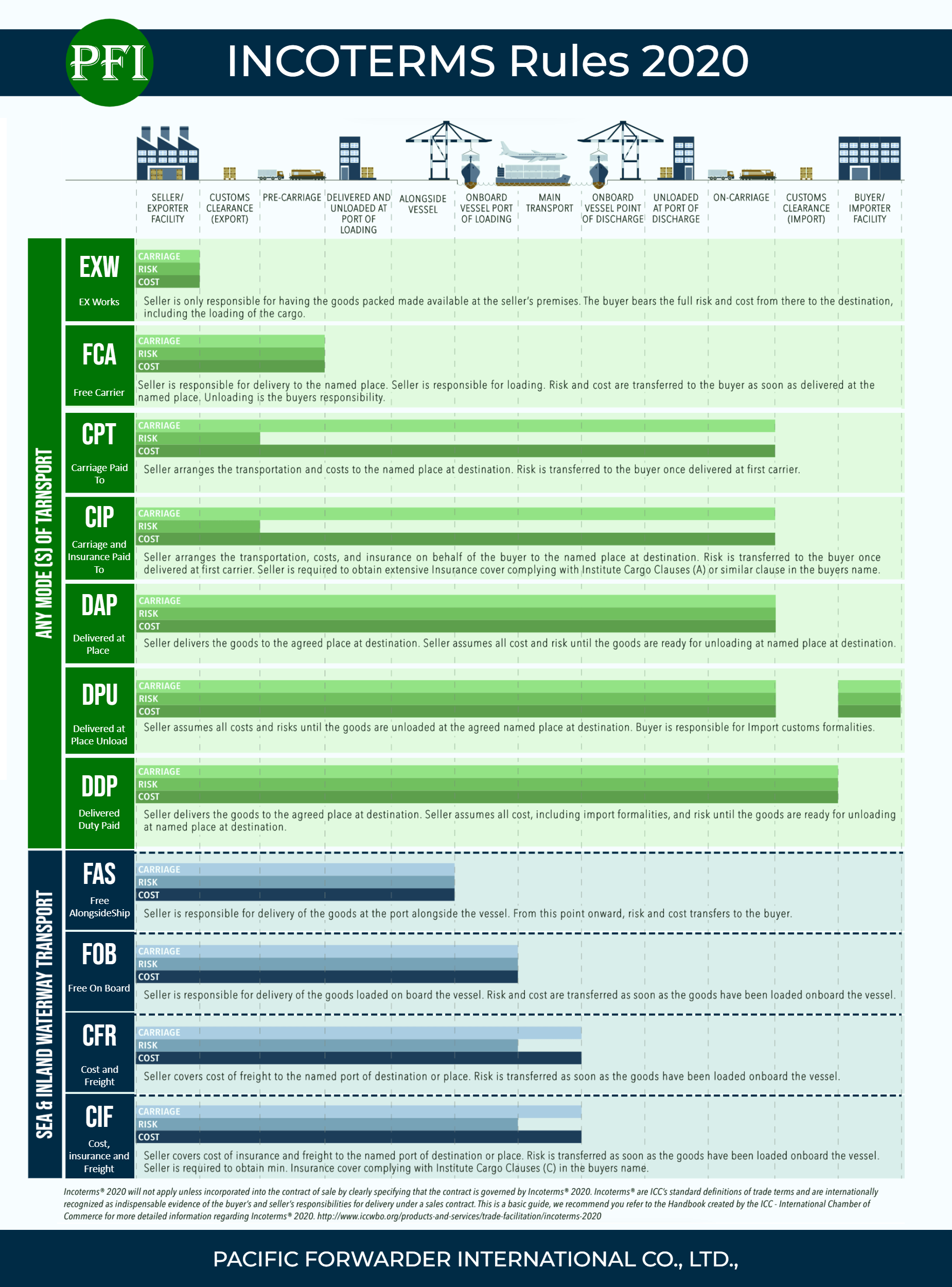 At PACIFIC FORWARDER INTERNATIONAL CO., LTD., we apply the principles of Incoterms® 2020 to ensure clarity, consistency, and confidence in every international transaction.